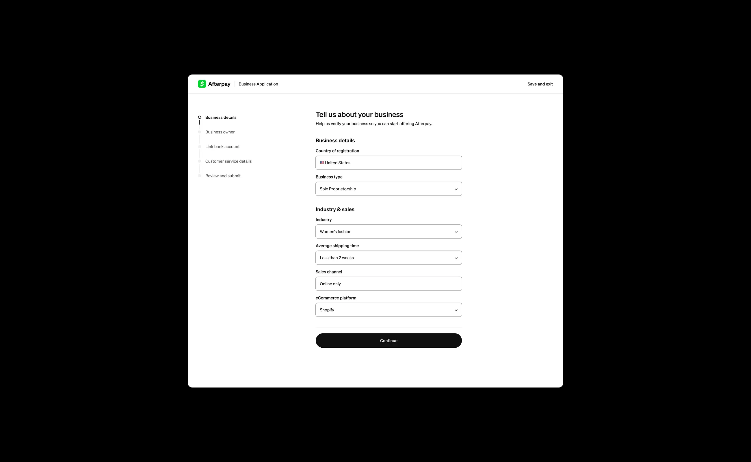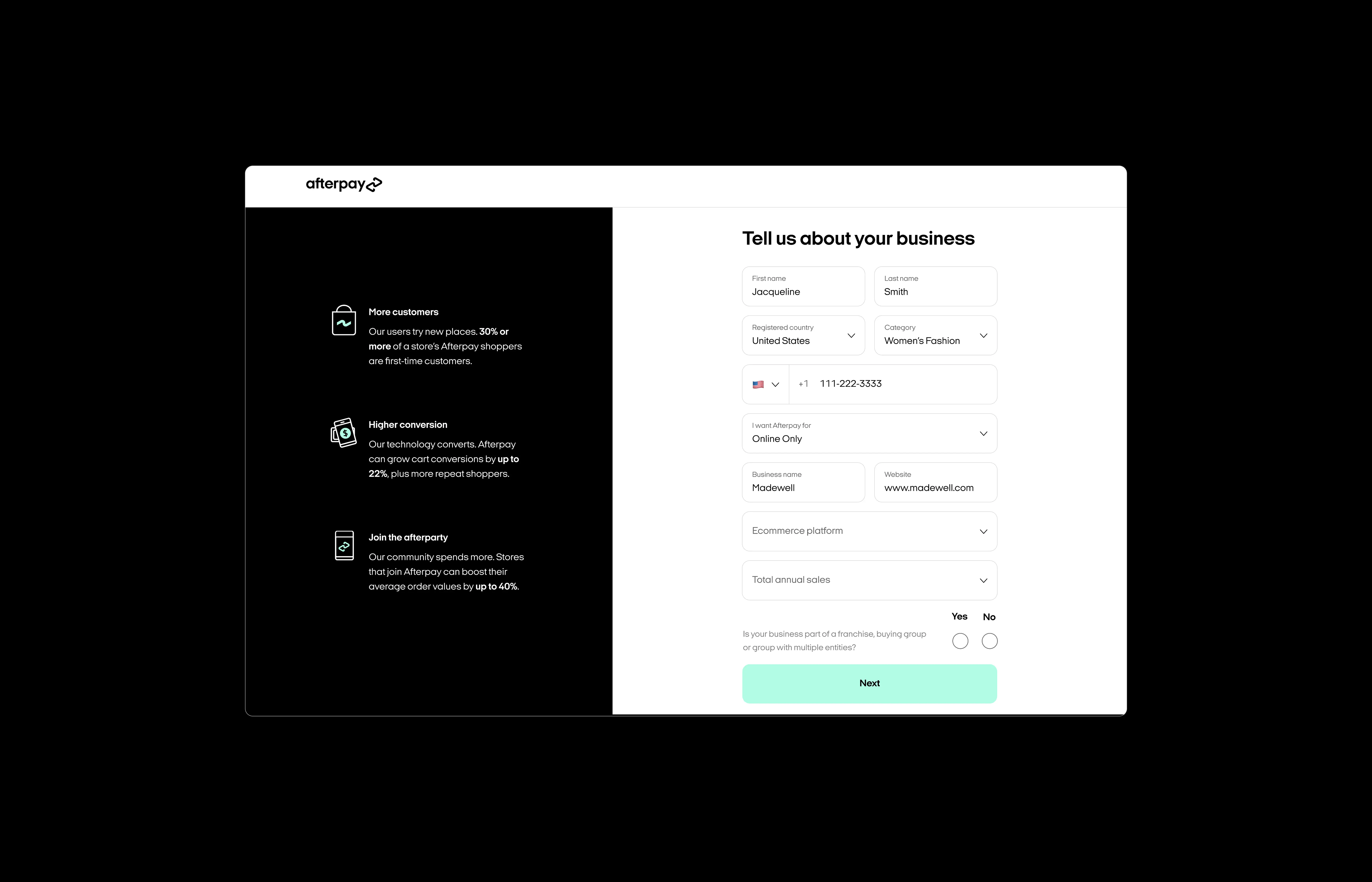 Afterpay: Merchant onboarding