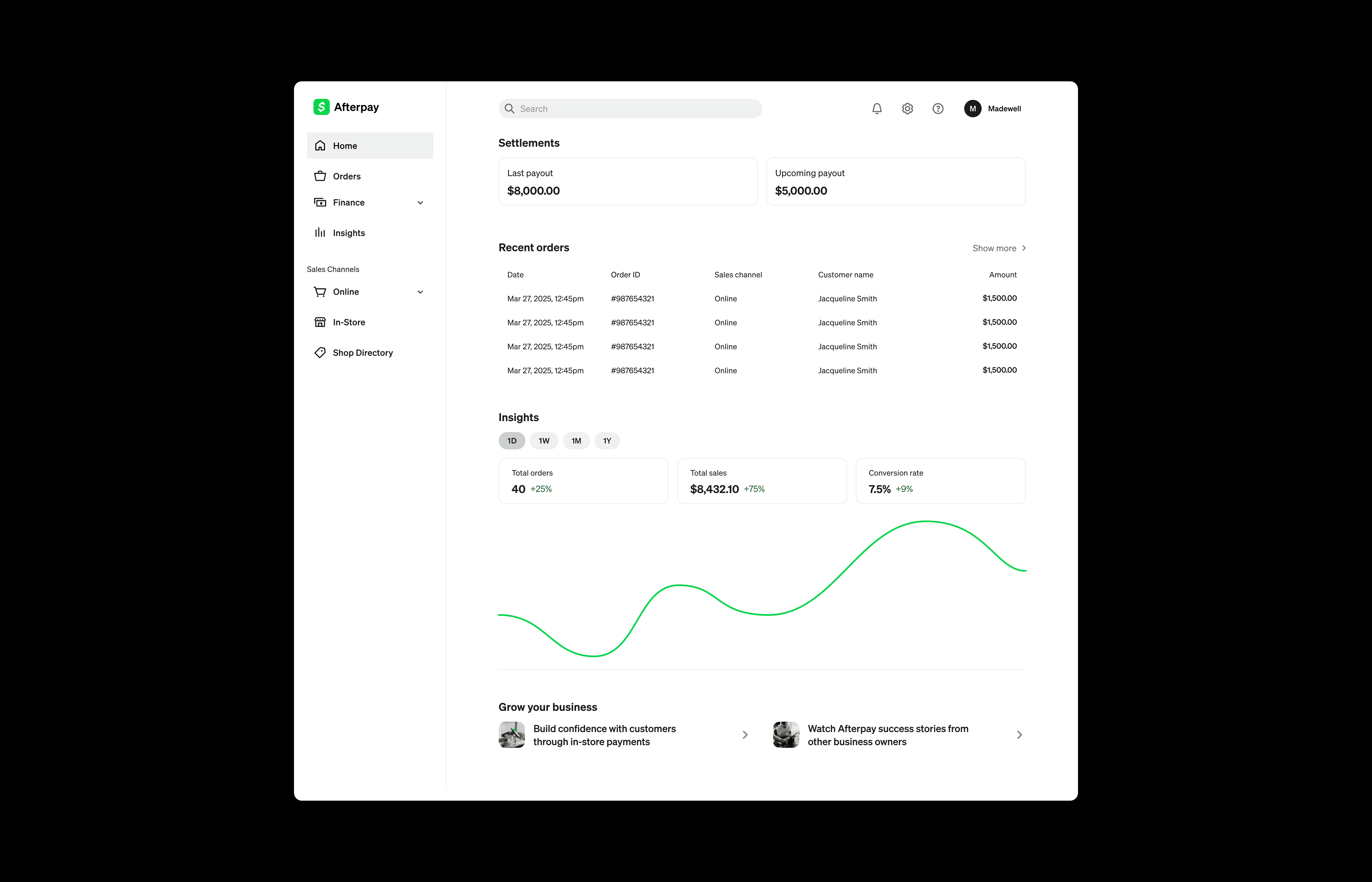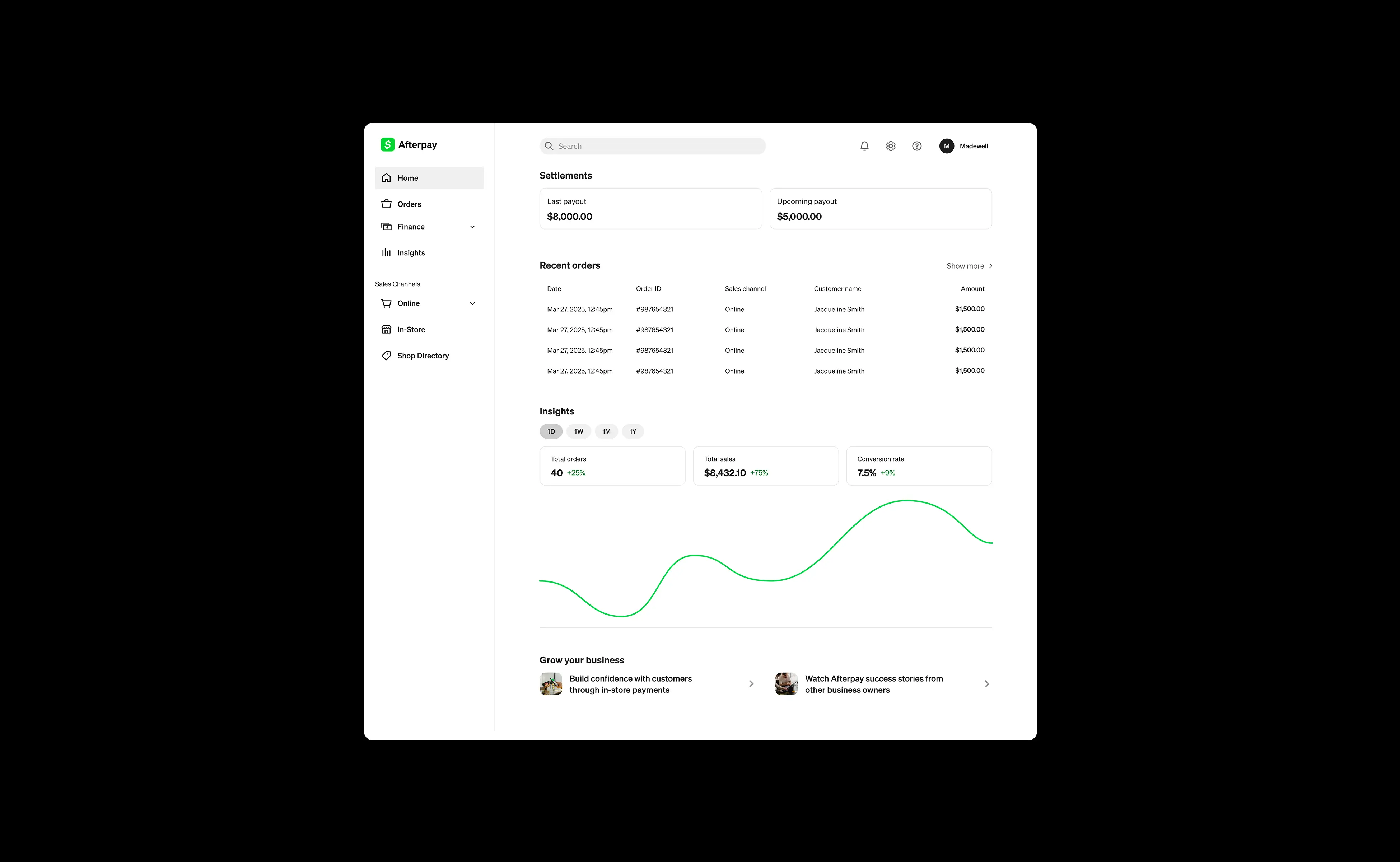 Refreshed Afterpay Business Hub aligned with Cash App design system